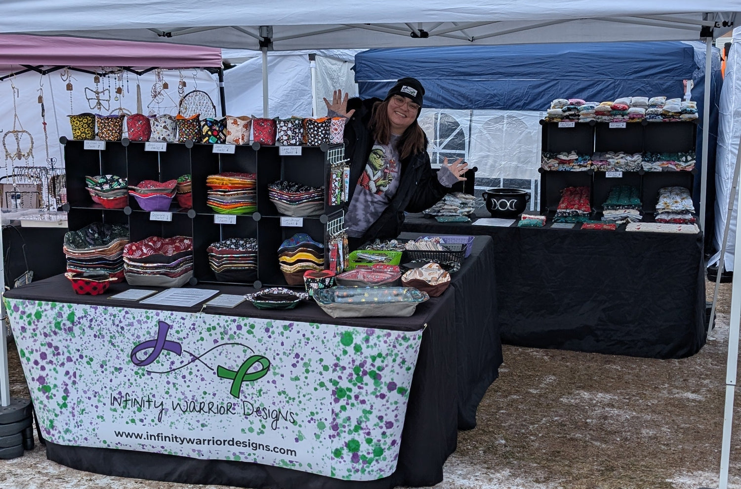 Amanda is a fiber artist and owner of Infinity Warrior Designs, where creativity and heart are stitched into everything she makes. When faced with significant health challenges, including sudden organ failure, dialysis, and a kidney transplant*, Amanda chose to channel her creativity for the sake of her mental health. What started as an outlet and hobby quickly grew into listing on Etsy and selling at local markets. Now, four years later, running Infinity Warrior Designs has become Amanda’s full time job, which is Amanda’s greatest childhood dream come true.